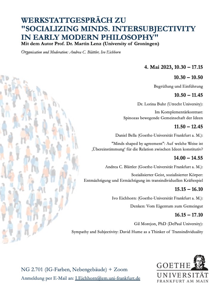 2023 is a year that keeps on giving … Right after the publication of a Symposium on my book, I now have the pleasure to announce a special issue on intersubjective readings of Spinoza, published in the Journal of Spinoza Studies – open access – in the good company of a discussion between Sanem Soyarslan and Steven Nadler. The special issue comprises most of the contributions to a greatly inspiring Werkstattgespräch on Socializing Minds,* kindly organised by Andrea Blättler and Ivo Eichhorn at the Goethe-Universität Frankfurt. I am enormously grateful to everyone involved in the Werkstattgespräch and the special issue. Here is a list of the contributions in the order of my replies: